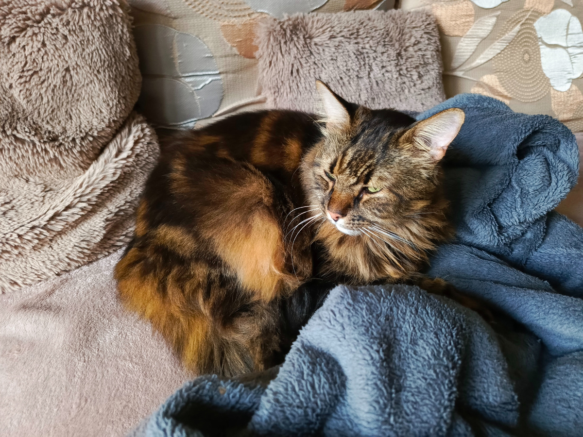 Всем привет! С вами Кузя Кусалочкин и сегодня я расскажу что вкусное купила хозяйка и как я стал есть паштет. Утром, как всегда, получил паштетик. Хозяйка немного обленилась и не стала мне вилочкой разделять кусочек паштета. В итоге сама виновата: у меня этот паштетик съезжает с тарелки, с коврика он тоже уезжает и хорошо возится по полу. Хозяйка потом ругается что пол грязный. Ну надо не лениться и разламывать паштетик на кусочки. Получил таблетку и ушел спать. Вчера хозяин так удачно оставил халат на диване, хозяйка его подогнула и сделала гнездо. Ой как мне это понравилось - весь день спал на этом халате. В обед хозяйка куда-то ушла, долго её не было. Принесла вкусненькое. Я сразу почуял рыбов и креветков. И, конечно же, стал просить чтобы меня покормили. Сварила хозяйка креветочек и совсем забыла, что надо их еще на мелкие кусочки порвать. Дала мне хозяйка креветочку, а я её и не съел. Вторую уже порвала на кусочки и я с большим аппетитом слопал, а потом порвала и первую - тоже с