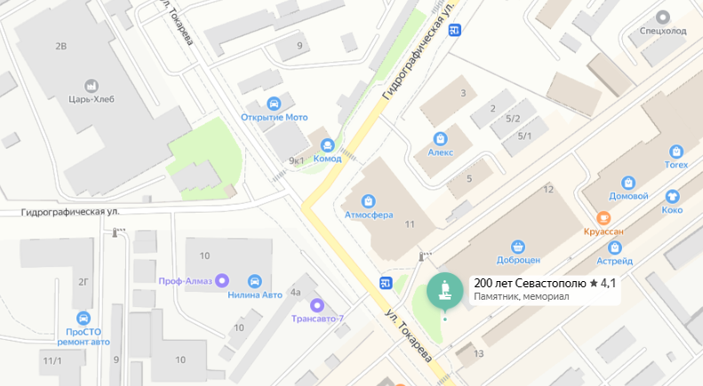 В этой статье покажу памятный знак, посвященный 200-летию Севастополя, который находится на улице Токарева, недалеко от "Соловьевских складов". Ну что, давайте посмотрим на памятный знак? Думаю, что многие часто ездили на "Соловьевские склады" за продуктами, вещами, но вот замечали ли они этот памятный знак? Честно признаюсь, одно время мы довольно часто с родителями здесь были и заходили именно с этой стороны. Но памятный знак я не помню, не обращала на него внимание. Как я его нашла? Очень просто: открыла карту, искала куда же в этот раз поехать, что поснимать для статьи и нашла его на карте На карте видно рядом остановку. Называется она "ТД Авангард", останавливаются на этой остановке автобусы с номерами 5, 14, 102, 400 и троллейбусы с номерами 14 и 19. Совсем немного проходим от остановки направо, в сторону входа на склады: Под деревом видим огромный камень, рядом лавочки и еще одно сооружение из камней: Думаю, вы уже догадались, что это не просто камень: А памятный знак: Д