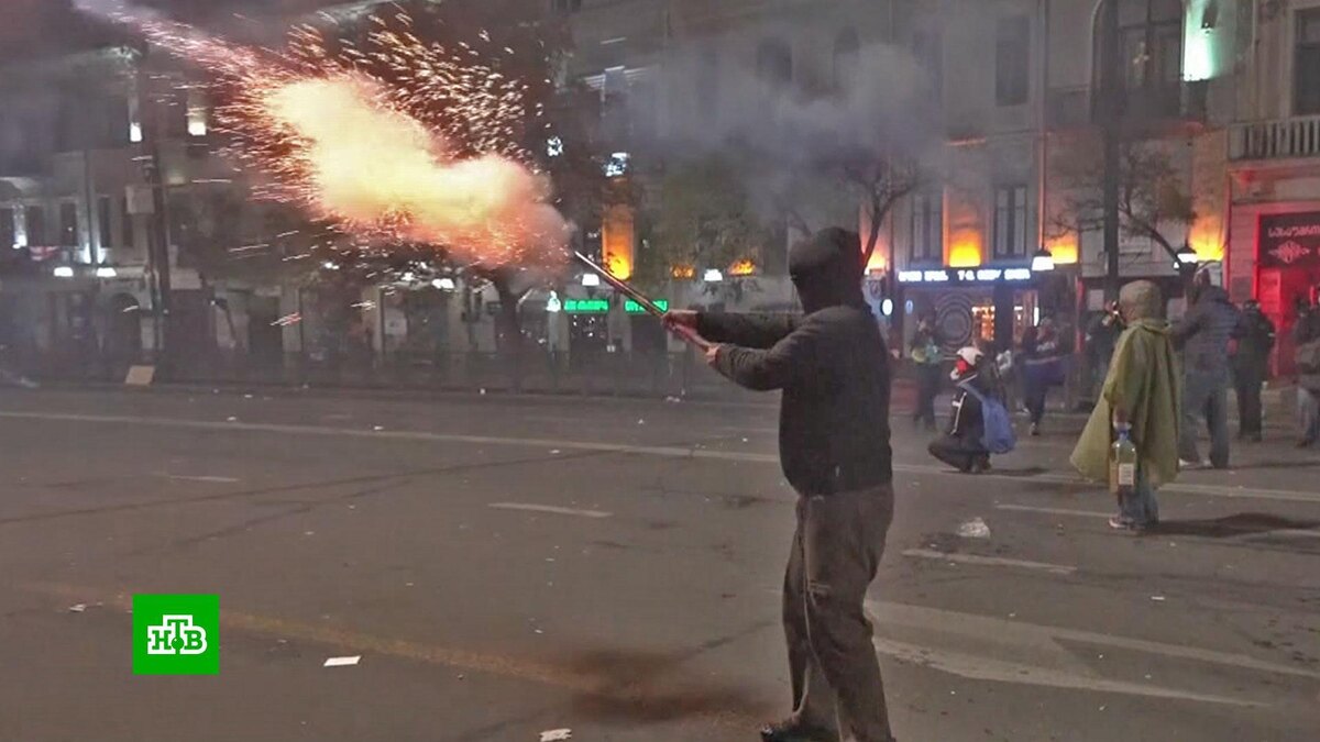 [ Смотреть видео на сайте НТВ ] Ночная акция оппозиционеров в Грузии вновь переросла в массовые беспорядки. Сначала митинг проходил спокойно, но в какой-то момент появилась организованная группа провокаторов. Они начали обстреливать пиротехникой полицейских, а вслед за этим в силовиков полетели камни. Известно, что один полицейский пострадал. Спецназ ответил водометами. В течение двух часов толпу вытеснили с проспекта. Около тысячи человек отправились в сторону набережной. По пути активисты ломали остановки, выворачивали банкоматы, били витрины, опрокидывали и поджигали урны, а также скандировали кричалки, призывая горожан присоединиться к протесту. Демонстрантов сопровождала полиция. Наиболее агрессивных участников шествия задерживали. В участки отправили не менее 10 человек. С улиц митингующие разошлись около четырех утра. [ Смотреть видео на сайте НТВ ]