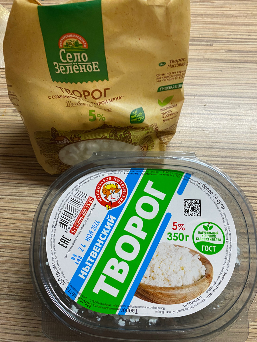 Взяла творог какой у меня был))) Получилось все вместе 600 грамм творога. Высыпала его в миску Добавить 2 столовых ложки сахара, 1/3 чайной ложки соли 2 крупных куриных яйца (сначала хорошо промыть водой) 2 столовых ложки муки с горкой или 5 столовых ложки манной крупы (у меня сегодня мука, но с манной крупой они плотнее получаются) Все хорошо перемешать рукой до однородной массы Взять тарелку на нее насыпать немного муки. Формировать из массы сырник и выложить на муку, обвалять в муке, лишнюю стряхнуть На сковородку с растительным маслом выложить сформированные сырники и жарить на маленьком огне сразу накрыть крышкой, так сырники получаются пышными Как только становиться коричневыми - перевернуть (я пережарила😀) Выложить готовые сырники на тарелку Дать немного остыть и подавать с вареньем (у меня земляничное), сметаной, вообщем со всем, что любите ❤️ Приятного аппетита!