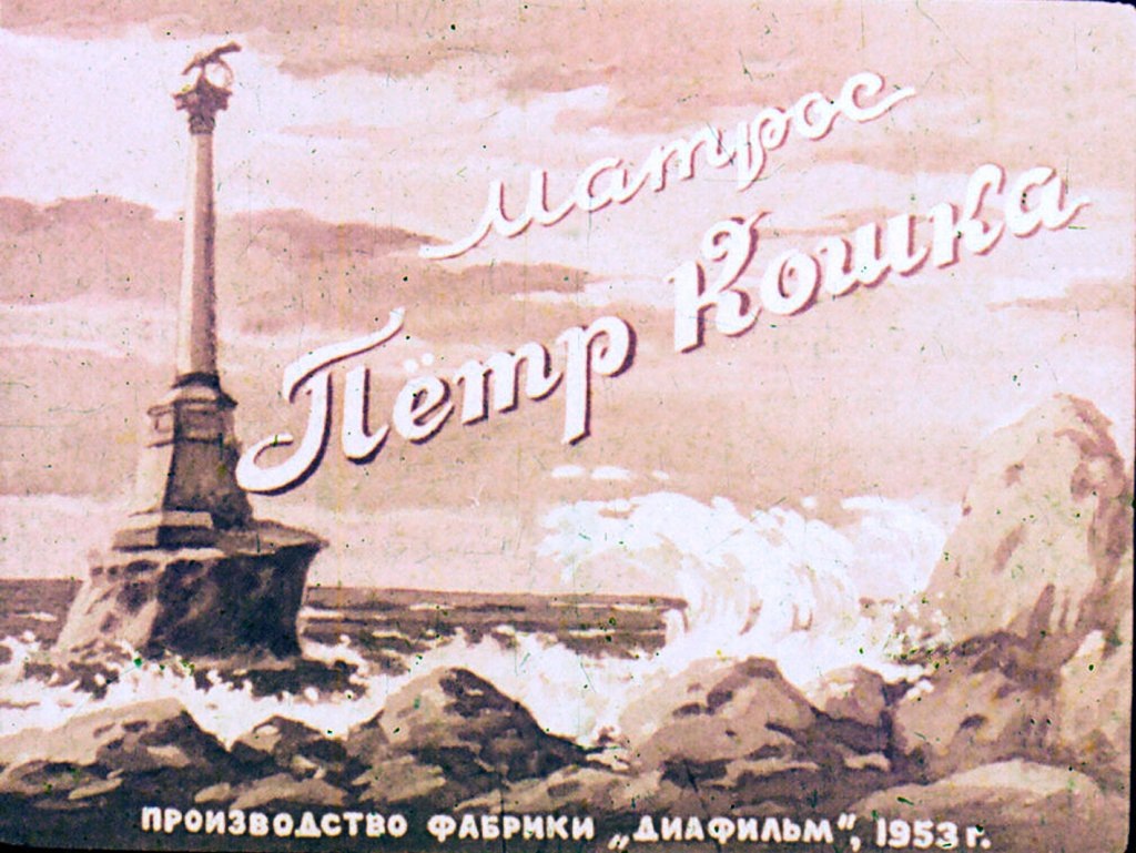 Диафильм «Матрос Пётр Кошка» представляет рассказ писателя Самсона Вольфовича Глязера, который более известен в кругах фигурного катания. Рассказ повествует о смекалке и отваге рядового матроса во время сражения в Синопской бухте на Чёрном море в 1853 году.