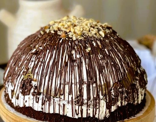 Этот торт готовится просто и довольно быстро, а самое главное, получается он очень вкусным. Воздушный шоколадный бисквит прекрасно сочетается с нежным сметанным кремом и сочными ананасами, которые придают торту тропический вкус. Такой восхитительный десерт идеально подойдёт как для праздничного стола, так и просто для уютного семейного чаепития. Продукты: Для бисквита: Для крема: Для начинки: Для глазури: В чашке взбить яйца с сахаром до пышной пены. Все сухие ингредиенты смешать и добавить к взбитым яйцам, аккуратно лопаткой перемешать до однородной массы. Выложить тесто в форму и выпекать 40-50 минут при температуре 180 градусов. Готовый корж остудить, после чего отрезать нижнюю часть коржа (это будет основа торта). Остальной корж порезать на небольшие кусочки. Для крема смешать сметану с сахарной пудрой, добавить ванилин и взбить миксером. Орехи порубить ножом и обжарить их на сухой сковороде. Основу торта пропитать сиропом от ананасов. Промазать кремом, выложить кусочки ананас