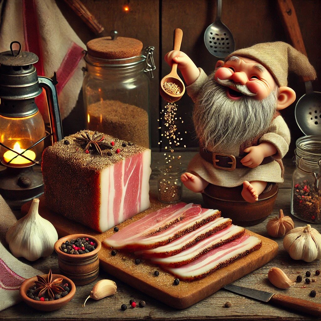Привет, друзья! Ваш Кузя снова с вами. На этот раз я хочу рассказать про такую простую, но удивительно полезную вещь, как сало. Знаете, я часто наблюдаю за хозяевами, когда они режут соленое сало к столу. Тут и истории про бабушек вспоминаются, и рецепты передаются из поколения в поколение. Это не просто еда — это целая культура! Многие недооценивают сало, считая его слишком жирным. Но я, домовой, который заботится о хозяйстве, скажу вам: в умеренных количествах оно просто кладезь здоровья! В старину сало считалось пищей рабочих людей. Откусил кусочек с хлебом, и можно полдня пахать — сил хватает. Моя бабушка-домовушка рассказывала, что в старину сало солили целыми слоями. Брали деревянную кадку, укладывали туда куски сала, пересыпали солью и ставили в прохладный погреб. Такая заготовка могла храниться всю зиму. Когда хозяева собирались в дальнюю дорогу или в поле, всегда брали с собой ломоть сала и корку хлеба. А ещё хозяйка моего дома как-то упомянула, что в некоторых странах, напри