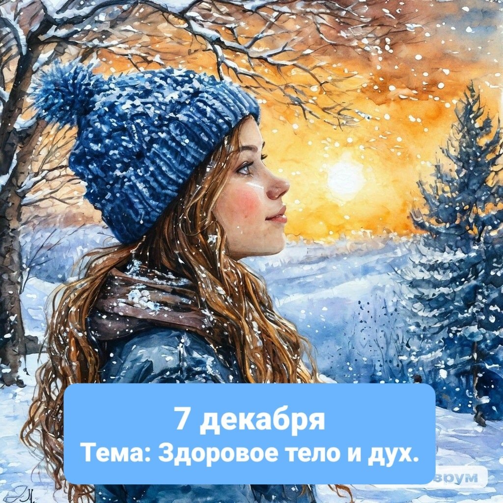 Сегодня 7 декабря , мы открываем следующий день календаря.Тема дня: Здоровое тело и дух. Очень ценно, когда мы имеем и то и другое. При этом тенденция к здоровому духу ( душе, чувственно- эмоциональному состоянию, психологическому здоровью) существенно возрастает с развитием и активной популяризацией психологии и смежных направлений.