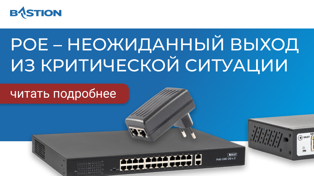 «Бастион» предлагает линейку оборудования PoE, которая подобно конструктору LEGO, позволяет собрать уникальную систему желаемого Вами уровня.
