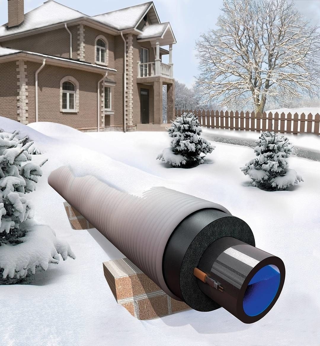 Современный загородный дом оснащён разными инженерными системами и, в том числе, водопроводом, канализацией, горячим водоснабжением и отоплением. Достаточно часто в зимний период возникает опасность промерзания трубопроводов, проложенных открыто на улице, в холодном подвале или закопанных на небольшой глубине. Традиционный способ защиты - прокладка труб ниже глубины промерзания грунта, которая для центральных областей России равна 1,4 м. Далеко не всегда имеется возможность уложить трубы на такую глубину. Сама по себе теплоизоляция не защищает трубы от замерзания, -так вода в трубе с теплоизоляцией толщиной 50 мм при температуре -15 °С замерзает за 7 часов. Наиболее простое и эффективное решение таких проблем-обогрев труб при помощи системы «TEPLOCOM GERDA HP». В данном комплекте применяется специальная саморегулирующаяся нагревательная лента. Свойство саморегулирования полностью исключает перегрев нагревательной ленты даже под толстым слоем теплоизоляции.