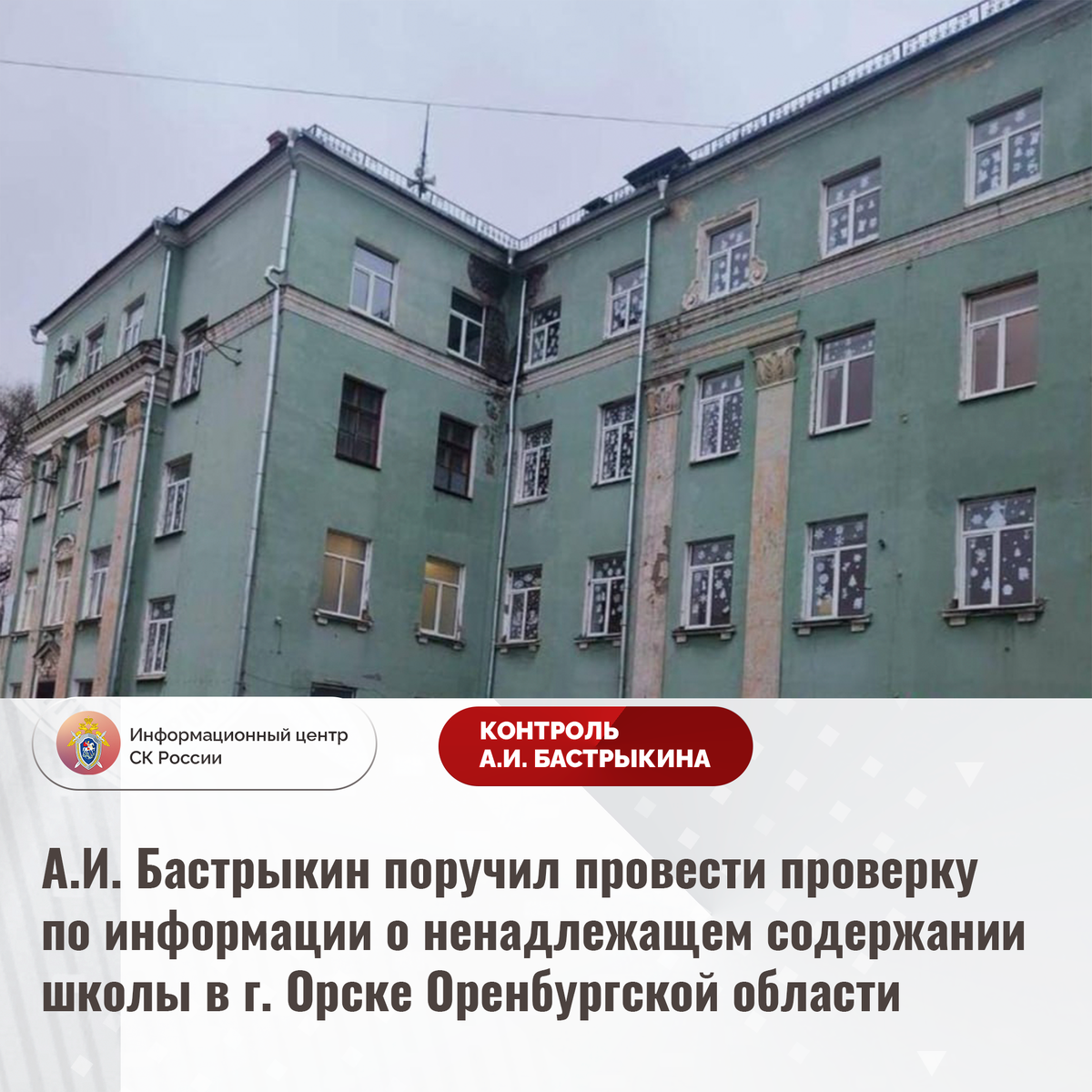 А.И. Бастрыкин поручил провести проверку по информации о ненадлежащем содержании школы в г. Орске Оренбургской области В СМИ и социальной сети сообщается о ненадлежащем содержании школы в городе Орске Оренбургской области. Более 75 лет капитальный ремонт здания не проводился. В результате строение находится в непригодном состоянии: на стенах образовались глубокие трещины, элементы фасада обрушаются, а штукатурное покрытие в классах осыпается. Многочисленные обращения родителей, опасающихся за безопасность несовершеннолетних, в администрацию образовательного учреждения и компетентные органы результатов не принесли. Срок выполнения восстановительных работ постоянно переносится. Председатель Следственного комитета Российской Федерации Александр Иванович Бастрыкин поручил руководителю СУ СК России по Оренбургской области Вячеславу Давидовичу Зудерману провести процессуальную проверку и доложить о ее предварительных и окончательных результатах. Исполнение поручения, а также ход процессуаль
