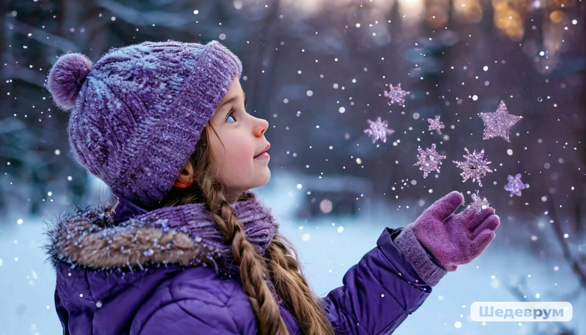 — Алиса, мы переезжаем в далёкий город Томск. Там совсем другая жизнь, и ты увидишь то, чего раньше никогда не видела. Алиса с интересом слушала рассказы о Сибири, но не могла представить, как это — жить там, где нет тропического тепла. Когда семья прилетела в Томск, на улице было холодно, а небо застилали серые облака. Алиса прижималась к маме, кутаясь в новую шубку. "Как здесь всё чужое," — думала она, скучая по своей солнечной родине. Но на следующее утро Алиса проснулась от шёпота родителей. Они смотрели в окно, и их лица светились удивлением. Алиса подбежала и замерла: с неба тихо падали белые хлопья.