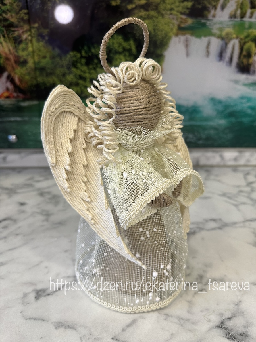 Рождественский ангел из джута. Джутовая филигрань. Поделка на Рождество Христово.