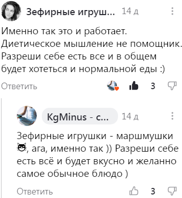 Я больше не с едой борюсь, выстраивая всё своё поведение вокруг еды, а задаюсь вопросом: