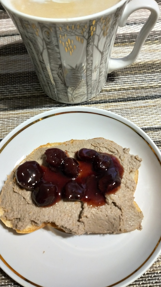 Вчера полдня мечтала о печеночном паштете. Слюной исходила и представляла, как я его на свеженькую чиабатту намажу, сверху варенье вишнёвое и чашечку кофе налью... Мммм
