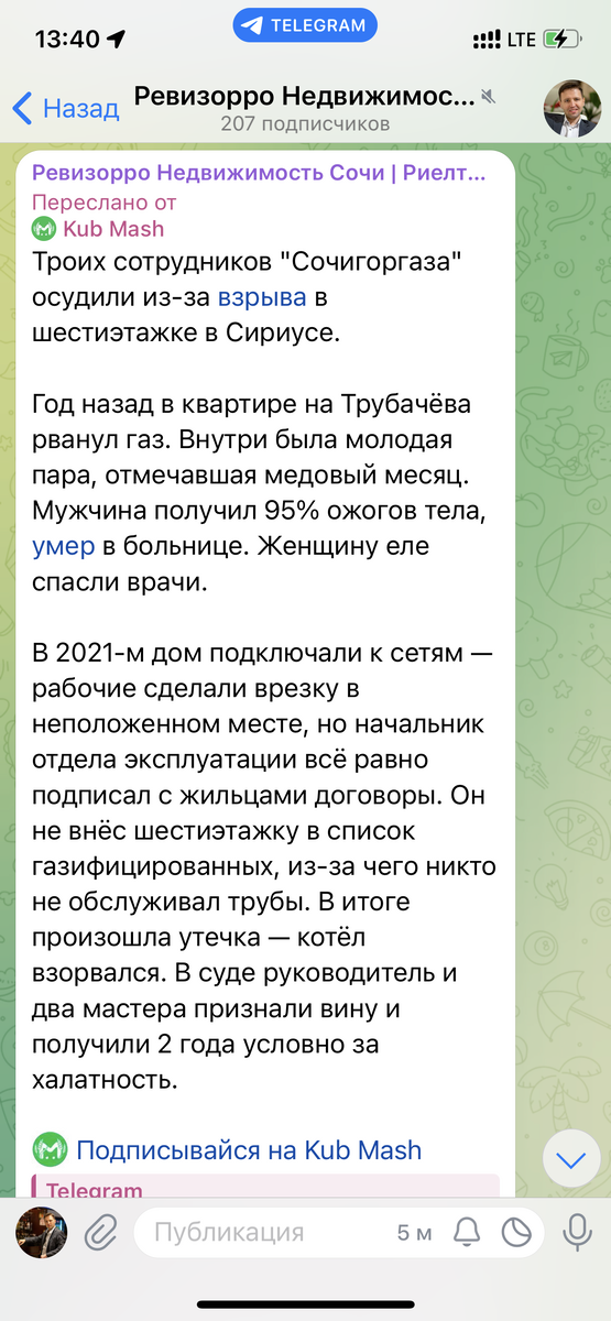 Троих сотрудников "Сочигоргаза" осудили из-за взрыва в шестиэтажке в Сириусе. Год назад в квартире на Трубачёва рванул газ. Внутри была молодая пара, отмечавшая медовый месяц. Мужчина получил 95% ожогов тела, умер в больнице. Женщину еле спасли врачи. В 2021-м дом подключали к сетям — рабочие сделали врезку в неположенном месте, но начальник отдела эксплуатации всё равно подписал с жильцами договоры. Он не внёс шестиэтажку в список газифицированных, из-за чего никто не обслуживал трубы. В итоге произошла утечка — котёл взорвался. В суде руководитель и два мастера признали вину и получили 2 года условно за халатность.