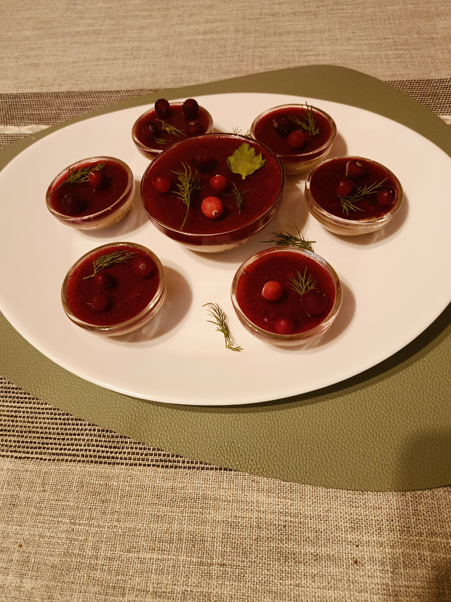 Здравствуйте читатели моего канала и добро пожаловать ко мне на кухню. Календарная зима наступила. На улице температура -2-3°С. На крышах уже и снег не тает. Значит не за горами и Новый год! …Посовещались с супругой, как будем накрывать праздничный стол. Исходя из предпочтений гостей, начало вырисовываться праздничное меню. В ходе обсуждения меню единогласно было решено обязательно приготовить паштет из печени. Но так чтобы он пока стоит на столе, не заветрелся, чтобы таял во рту, чтобы у каждого желающего отведать, была своя порция, и чтобы подача была не хуже, чем в ресторане, а при этом готовить было понятно и просто, и обязательно из доступных ингредиентов. Отработал задание. Все пожелания учтены. Технология приготовления простая. На приготовление потребуется 30–40 минут и используется минимальное количество ингредиентов и посуды. Предлагаю попробовать, думаю, что не пожалеете. ИНГРЕДИЕНТЫ: Клюквенное желе: Паштет: КАК ПРИГОТОВИТЬ: Готовим желе. 1. В емкость наливаем 50 мл холодной