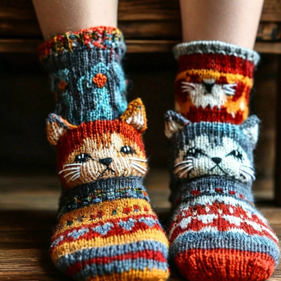 Всем привет! Спешу вас разочаровать, эти прекрасные носки ,которые вы видите на картинке, связала не я. Они для привлечения внимания. Их мне выдала нейросеть. Конечно, если загореться желанием и иметь мотивацию, такие интересные носки можно связать. Для этого надо заморочиться, иметь в запасе разноцветную пряжу и схему. Я вяжу простые носки. Пряжу не покупаю, а использую для этого старые вязаные вещи (шарфы, шапки, свитера) те, которые можно распустить. Люблю давать старым вещам новую жизнь. Когда-то давно ходила на курсы вязания. Преподавательница нам говорила: "Девочки, пряжа, это золото. " Действительно во времена тотального дефицита, умение вязать очень выручало и я вязала много разных вещей для себя и своего ребёнка. Сейчас такой необходимости нет, все можно купить. Да и способность вязать сложные узоры у меня напрочь исчезла. Странное явление произошло со мной. Я с удовольствием вышиваю и очень редко путаюсь в крестиках,а вязать могу только чулочной или платочной вязк