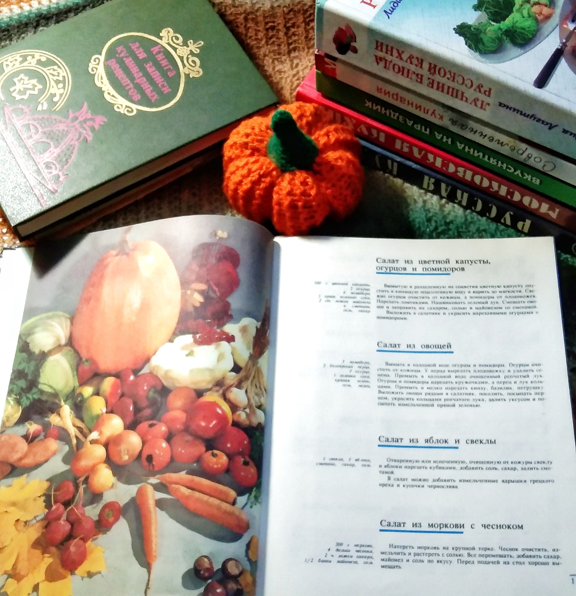 Очень рада вам, дорогие друзья! Спасибо, что заглянули на огонёк! *** Я уверена, что в каждом доме есть книги по кулинарии, есть записные кулинарные тетради, где с любовью записаны семейные рецепты... И наша домашняя библиотека не исключение! Основная моя "рабочая" книга - это " Секреты домашней кухни", по этой книге я постигала все базовые рецепты. Признаюсь честно, дорогие друзья, я предпочитаю классические рецепты и почти не пользуюсь рецептами из открытых источников Интернета...вот такая я старомодная! Каждая хозяйка на своей кухне- это волшебница! Но только на своей... Мне доставляет особое удовольствие искать и выбирать необходимый рецепт: я беру одну книгу, тщательно вчитываясь в каждую строчку, затем другую...сравниваю и анализирую рецептуру- это восхитительный процесс! Да, кулинарные книги требуют времени и внимания, но именно они учат нас не только готовить, но и ценить сам процесс.. С особой радостью и даже волнением мы с супругом составляем праздничное меню на Новый Г