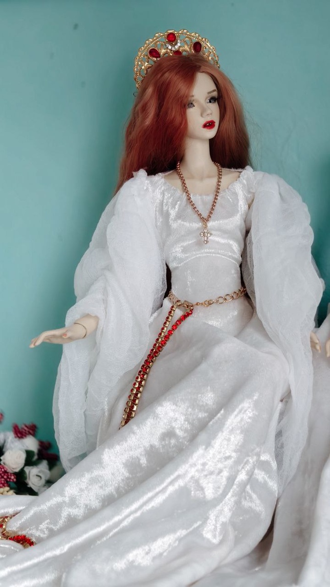 Приветствую всех! Это заключительная часть о новогодних нарядах для авторских девочек формата Барби - Кристины, Катрины и Камиллы. Предыдущие части здесь: Декорирование нарядов подошло к своему логическому концу, хотя... Этих вариантов может быть очень и очень много, благо белый цвет позволяет сочетать с собой все цвета и оттенки. Для Камиллы я выбрала красный цвет - "рубины". К цвету ее губ сочный красный очень подходит. Для Кристины я выбрала цвет розового топаза. Катрине же достался белый цвет - "бриллианты", с нотками кремового - "жемчуг". Групповое фото на полочке. Все костюмы получились разными. Это логично, ведь даже куклы все разные, со своим характером, своим типажом. А какой из костюмов приглянулся вам? Следующие на очереди за костюмами Кэрол Барри, Антуанетта, Принц - масштаб 1:4, а также две девчушки формата 1:12 - Ким и Кайла. До новых встреч! Наталья.