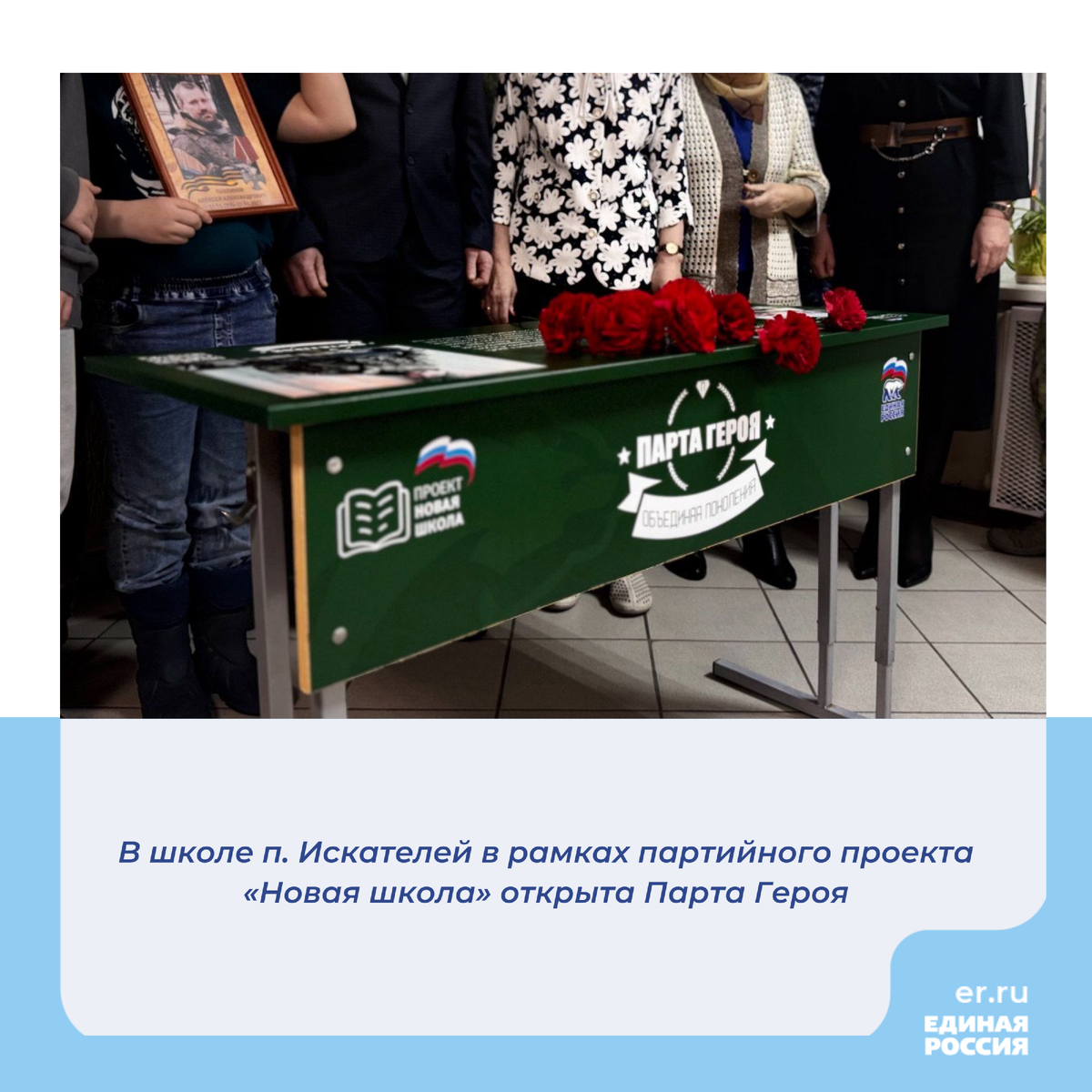 В школе п. Искателей в честь выпускника - участника СВО установлена «Парта Героя». Открытие прошло в рамках проекта «Единой России» «Новая школа».