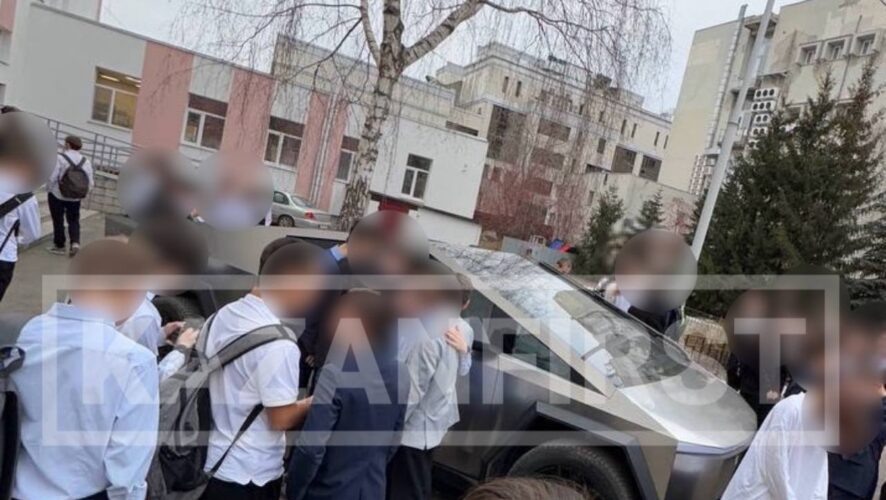 В Казани у лицея заметили Tesla Cybertruck: школьники устроили фотосессию с футуристическим пикапом