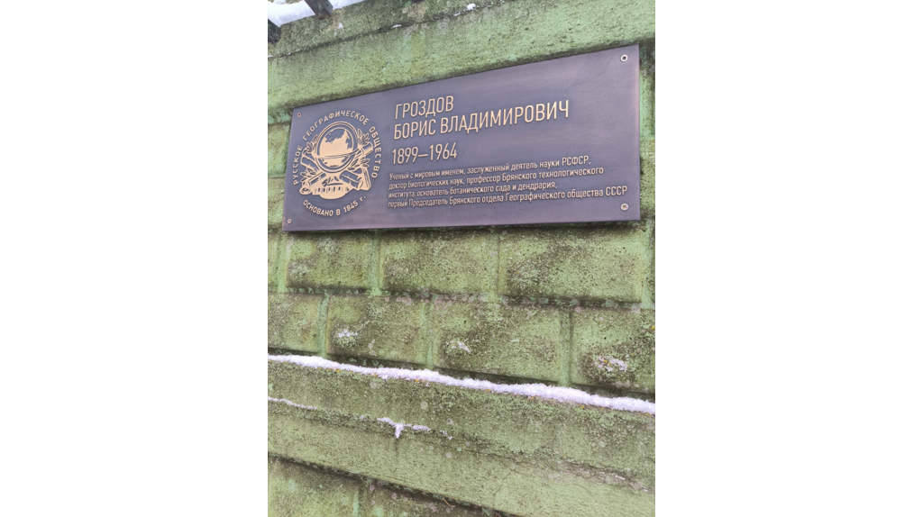 Сегодня, 7 декабря, у центральных ворот брянского ботанического сада состоялось открытие мемориальной доски в память о выдающемся ученом с мировым именем, основателю сада и дендрария, заслуженному деятелю науки РСФСР, доктору биологических наук, профессору Брянского технологического института, первому Председателю Брянского отдела Географического общества СССР – Борису Владимировичу Гроздову. В мероприятии приняли участие ректор университета Валерий Егорушкин, председатель Русское географическое общество в Брянске Олег Заварзин, директор института ЛКЛАТиЭ Дмитрий Нартов, заведующая кафедрой «Ландшафтная архитектура и садово-парковое строительство» Анна Скок, начальник ботанического сада Максим Хоменок, преподаватели и студенты БГИТУ.