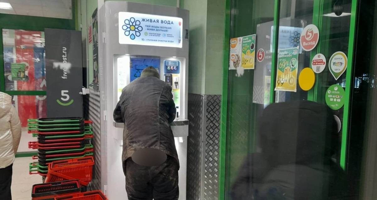 В ростовской «Пятерочке» бродяга поселился на автомате по продаже питьевой воды