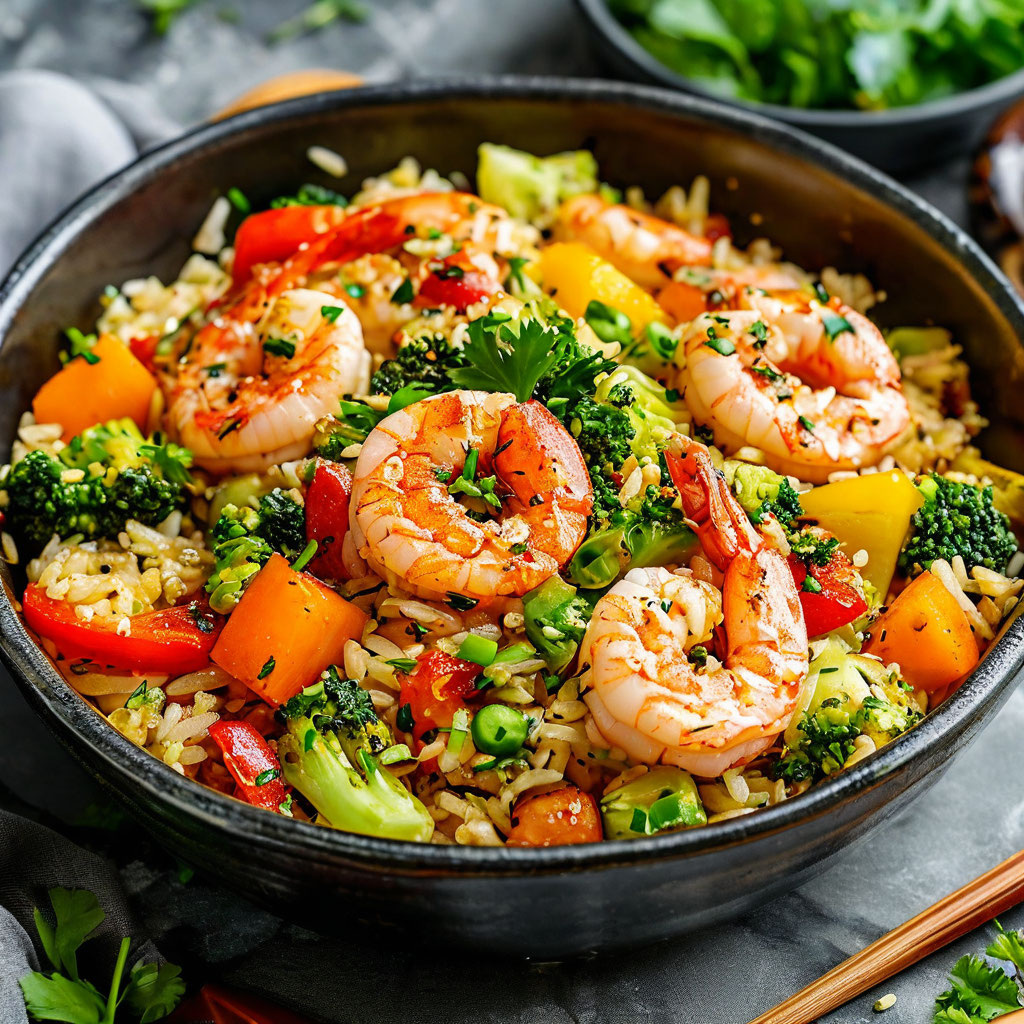 Рис, овощи и креветки: вкусный и полезный обед за полчаса