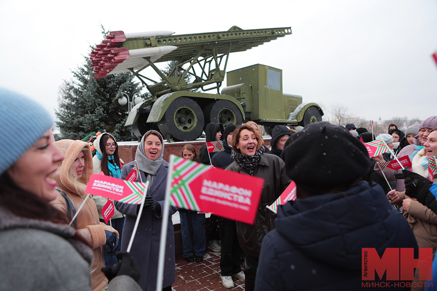 Песенный флешмоб прошел у мемориального комплекса «За нашу Советскую Родину» в Орше 7 декабря. Молодежь спела «Катюшу» в сопровождении оркестра Военной академии, передает корреспондент агентства «Минск-Новости». Идея флешмоба возникла спонтанно. Бросили клич — и в назначенное время у памятника легендарной «Катюше» собрались школьники, учащиеся, студенты, представители трудовых коллективов, жители из других районов Витебщины. Зазвучали вступительные аккорды — и грянули слова, знакомые и любимые с детства. — Очень теплая и душевная акция. Дети с удовольствием откликнулись на идею флешмоба. Вообще, это место знаковое, ребята любят приходить сюда в памятные дни — 9 мая, 3 июля, — рассказала классный руководитель 9-го класса средней школы № 8 Елена Коробкова. Ученица этого класса Полина Мошарская занимается музыкой с раннего детства, поэтому спеть любимую песню с оркестром для нее — вдохновляющий опыт. — Мы должны помнить и чтить историю Беларуси. Очень круто, что мы пришли сюда всем классо