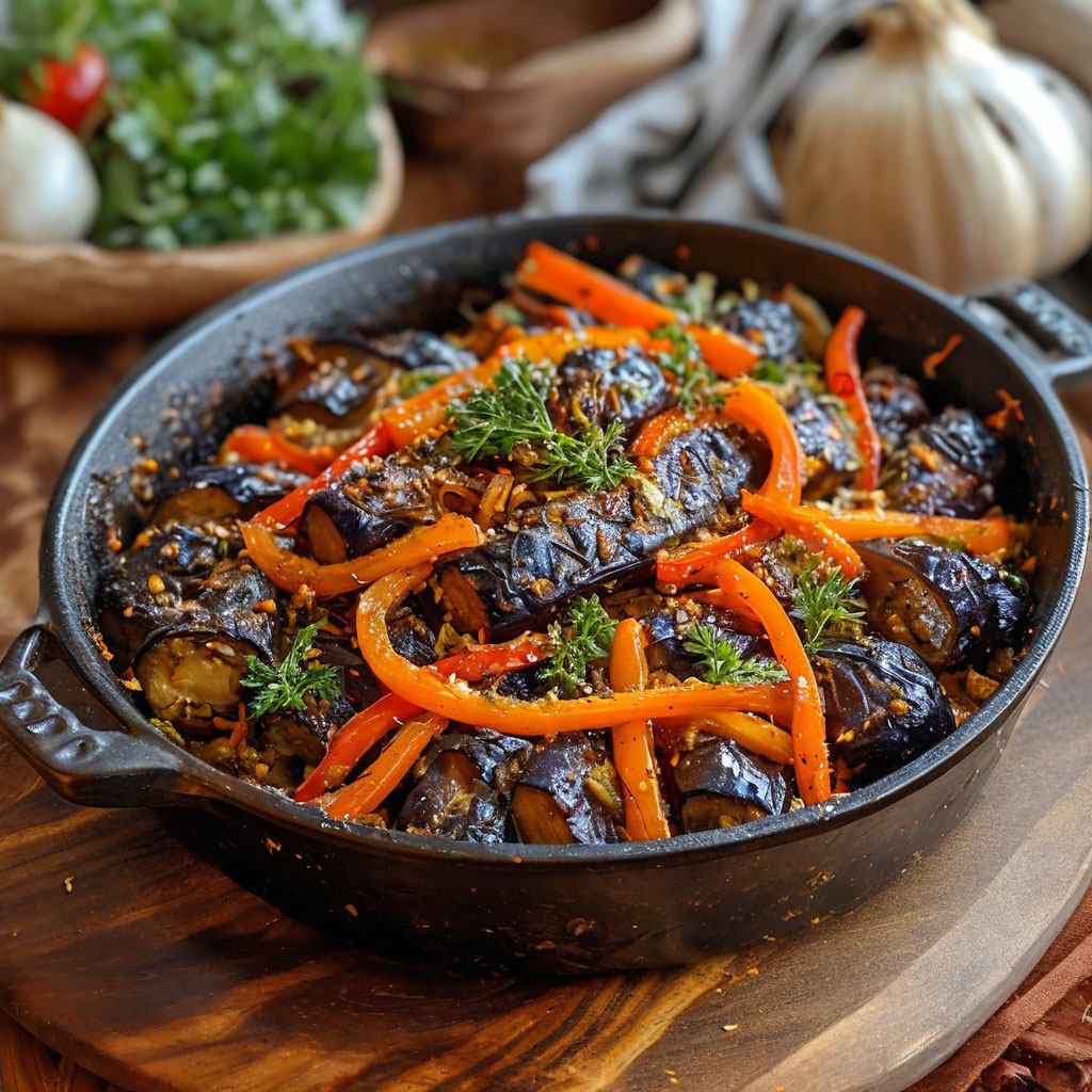 Овощная симфония: запечённые баклажаны с перцем и морковью