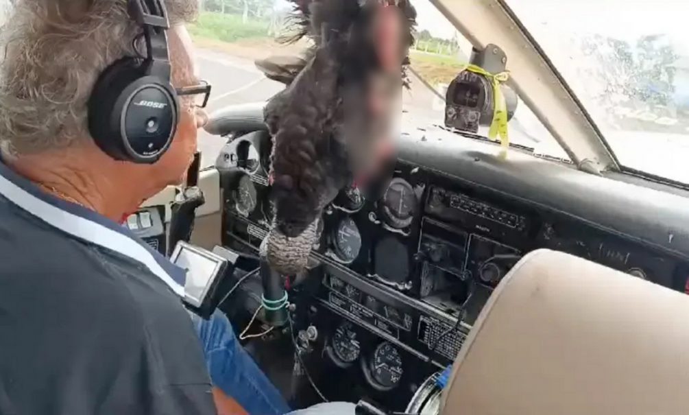 Ястреб пробил лобовое стекло самолета и застрял под носом у пилота