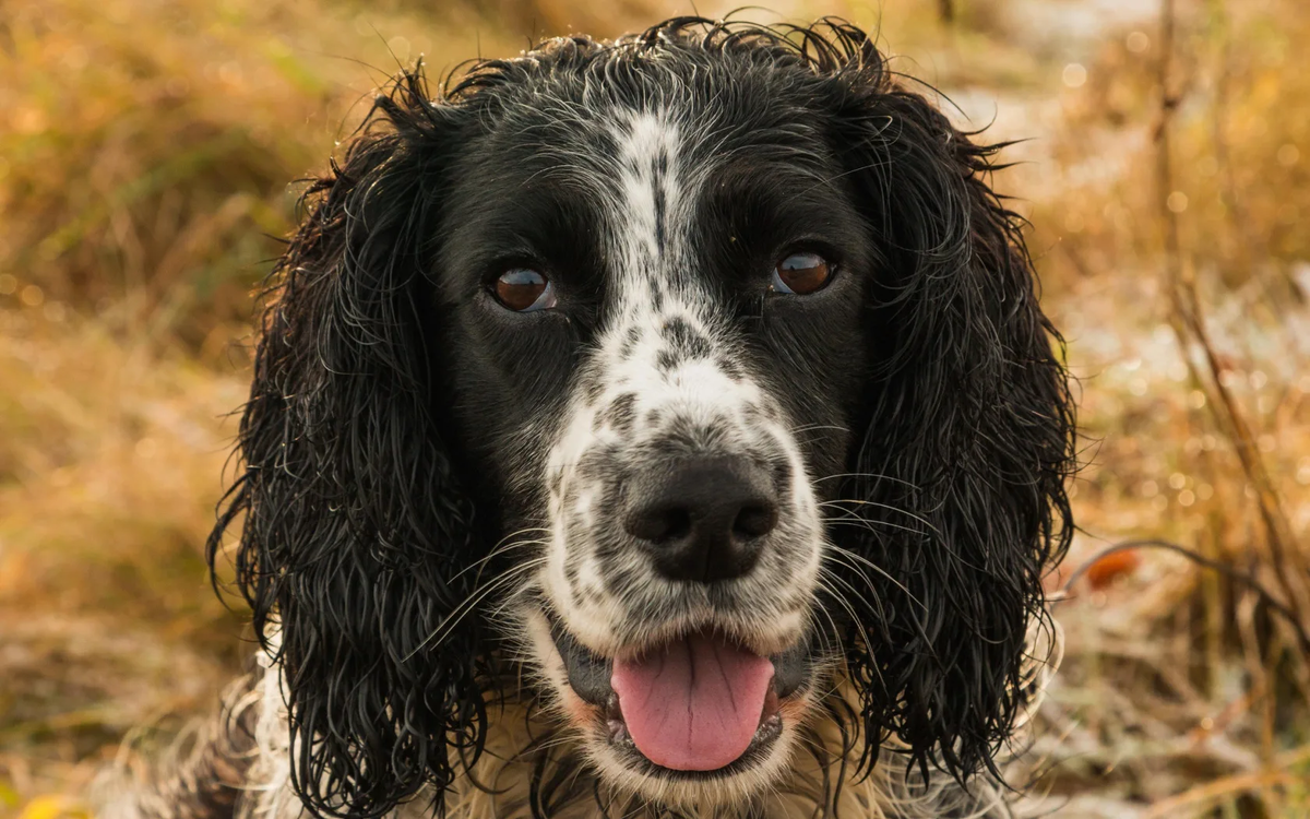 Длинные обвислые уши, лохматый хвост – охотничья собака на пернатую дичь.