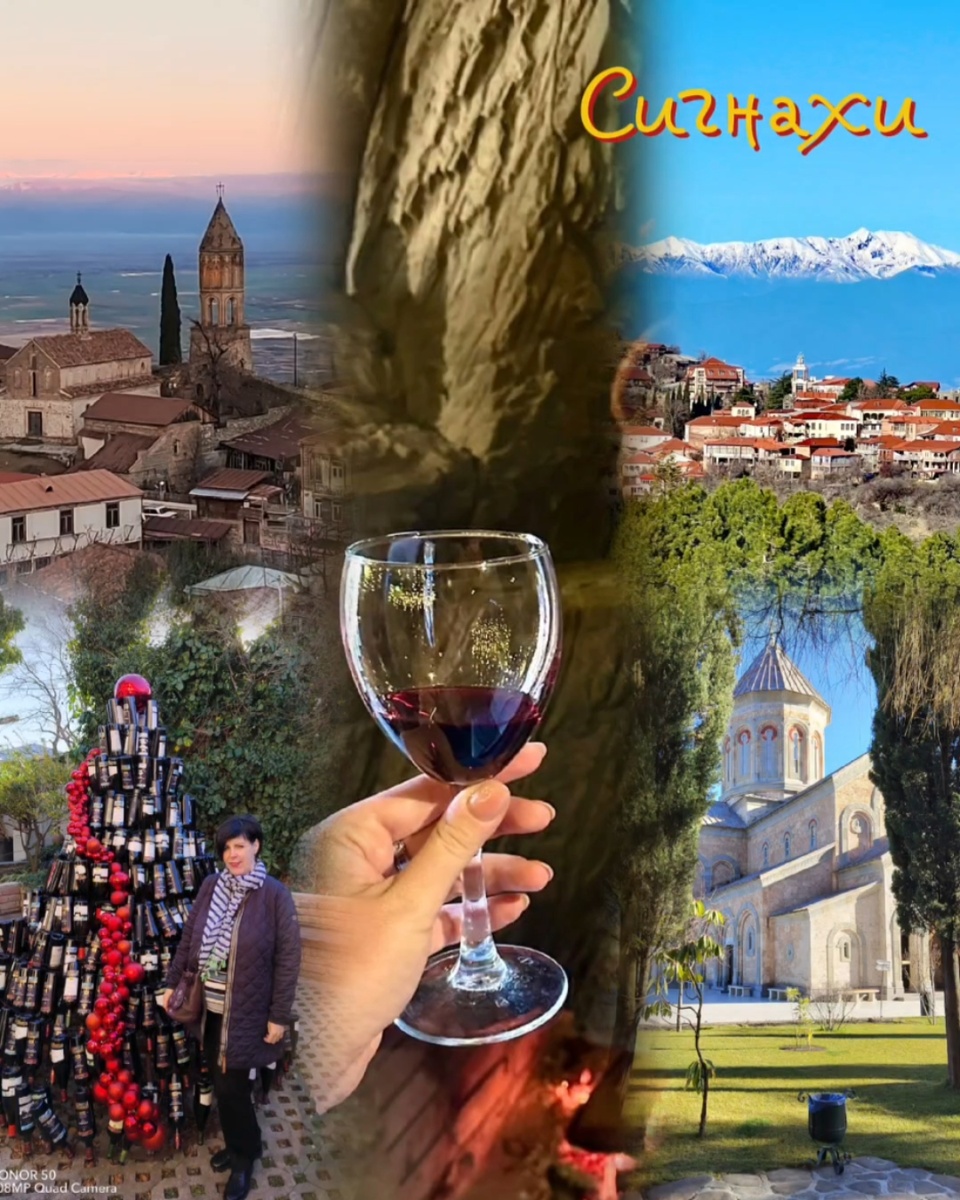 По пути, правда остановились на смотровой площадке, где открывался очень красивый вид на Сигнахи и Алазанскую долину. Там же отведали вкуснейшего гранатового сока и закупились чурчхелой.