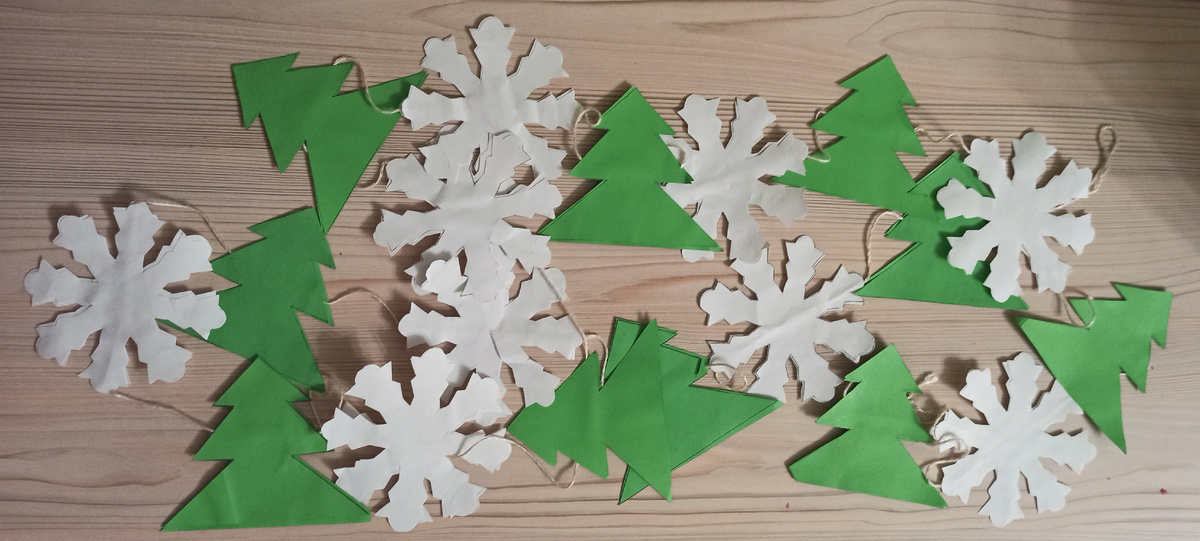 Новогодние гирлянды из цветной бумаги для детей (посложнее)