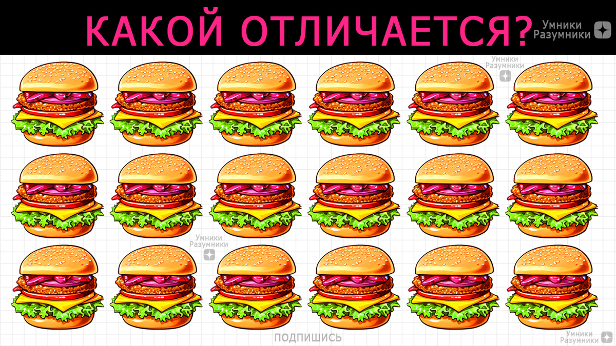 Сложные задания на внимательность ⭐️ Найди отличие между бургерами 🙃
