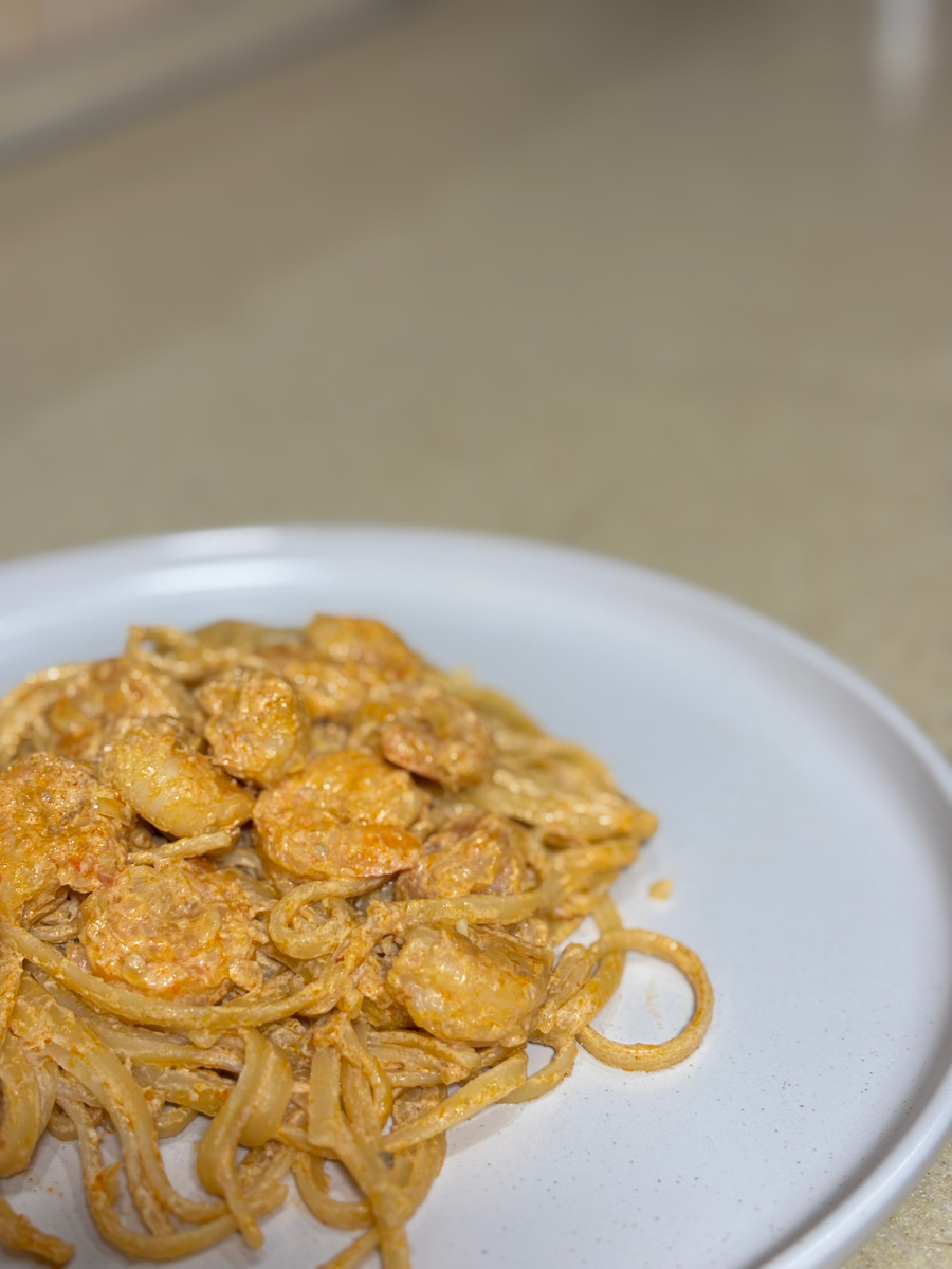 Пошаговый рецепт Подготовьте ингредиенты: ✅креветки очищенные 200 гр ✅Ваша любимая паста 150 гр ✅паста Том ям 1 столовая ложка ✅оливковое масло 1 столовая ложка ✅чеснок 1 зубчик ✅1/2маленькой луковицы (40 гр) ✅острый красный перец по вкусу ✅соль, перец по вкусу ✅сливки 100 мл Шаг 1 Отварите пасту в подсоленной воде до состояния аль денте Шаг 2 Разогрейте оливковое масло в сковороде на среднем огне Шаг 3 Мелко нарежьте лук и чеснок, обжарьте на оливковом масле 4-5 минут Шаг 4 В сковороде вместе с луком и чесноком обжарьте креветки 3-4 минуты Шаг 5 Добавьте к креветкам пасту Том ям, перемешайте, чтобы все креветки равномерно покрылись пастой Шаг 6 Добавьте к креветкам сливки, дайте закипеть постоянно помешивая, убавьте огонь, добавьте соль, перец, красный острый перец по вкусу. Помешивайте до загустения соуса и отключите огонь Шаг 7 Добавьте отваренную пасту к креветкам, хорошо перемешайте и подавайте к столу горячим #foodблогер #еда #рецепты #паста #пастатомям