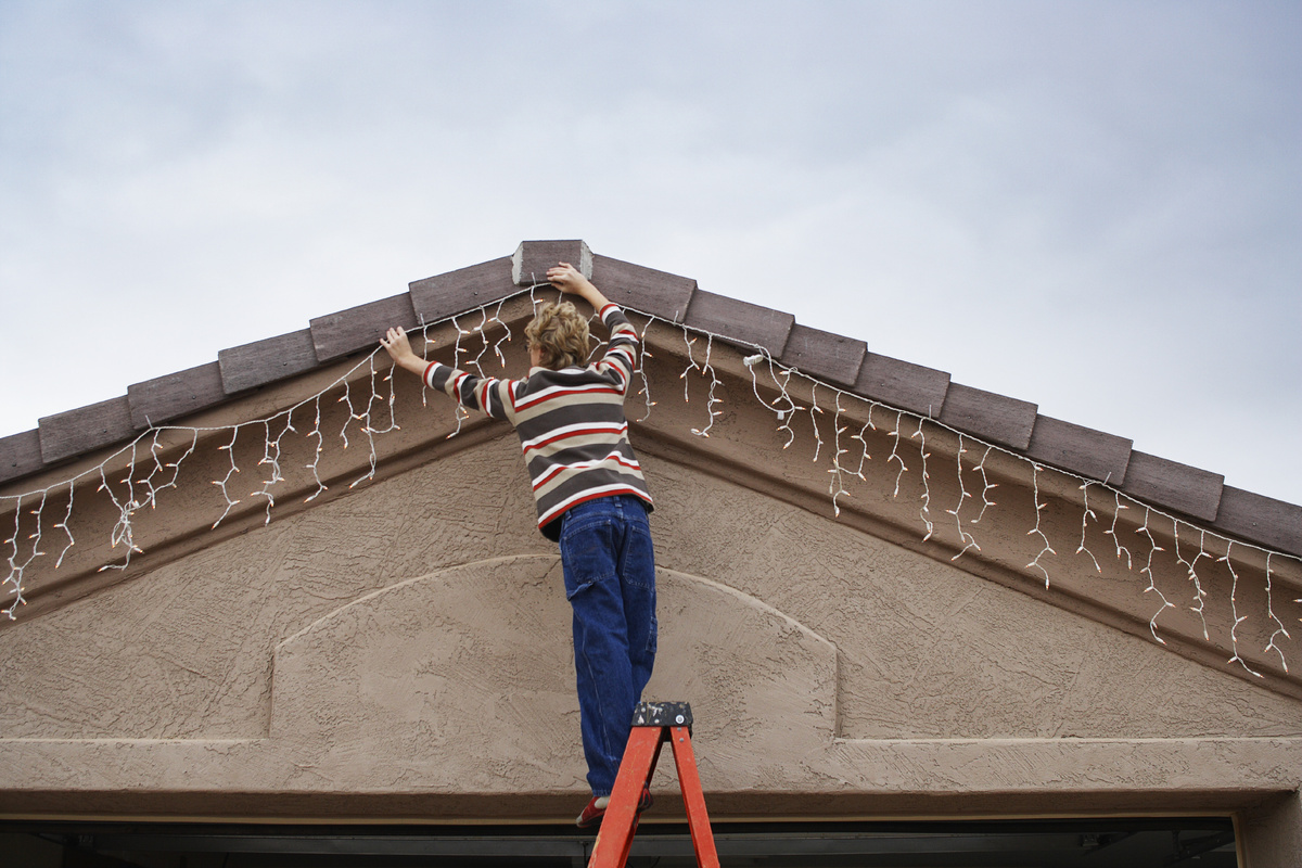 Определите место, где будет крепиться гирлянда. Обычно это карнизы крыши, оконные рамы или углы здания. Важно убедиться, что выбранная поверхность достаточно прочна для крепления. - Крепление верхней части гирлянды