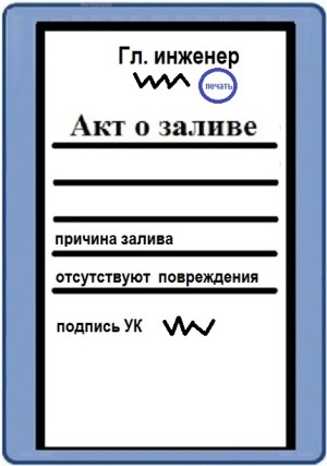 Главный Инженер ГБУ «Жилищник» Иванов И.И. АКТ о заливе. Комиссия в составе : Мастера по эксплуатации Кротовой И.Н., слесаря мастерского участка