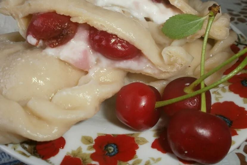 Замесить крутое тесто, взяв 2 яйца, 1/4 стакана воды и 1,5 стакана муки. Раскатать очень тонко деревянной скалкой и нарезать квадратиками. Из 400 г вишен вынуть косточки, начинить этими ягодами вареники, сварить. Подавая на стол, облить вишнёвым соком, который вскипятить с ложкой сахара, мёда или патоки и стаканом воды, положить туда 2 - 3 истолчённые вишнёвые косточки. Так же можно приготовить вареники с черникой и голубикой. (из журнала "Крестьянка") 1955 год Поддержать пенсионера: //www.donationalerts.com/r/domovoy96 Подписаться https://zen.yandex.ru/domovoy96 ВКонтакте https://vk.com/ekspravka Одноклассники https://ok.ru/domotadoya Телеграм канал https://t.me/coolotadoya