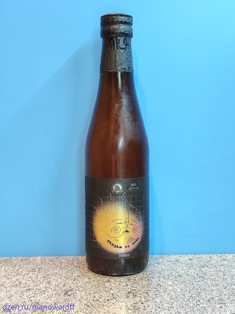 Сегодня будем пробовать напиток в довольно редком стиле - энопиво (oenobeer). Произвела его воронежская пивоварня Brewlok Brewery совместно с с винодельней Mangup, а называется он "Сказки на ночь". Что такое энопиво? Это гибрид вина и пива, в котором виноград дает до 49% сбраживаемых сахаров. Т.е. в пивное сусло добавляют виноградный сок, затем все это дело бродит и в итоге получается такой напиток. В BJCP этот стиль пива называется Italian Grape Ale. Нечто подобное я пробовал в прошлом году - это был сальниковский винный эль. Весьма вкусная штука оказалась. Посмотрим, что получилось у воронежцев. Но сперва глянем описание: А теперь нечто совершенно необычное. Мы сделали коллаборацию с винодельней Mangup. В результате у нас получится grape ale из винограда сорта Ркацители, который мы выдерживали в течение года. Это крепкий, насыщенный бленд пива и виноградного сока, который точно придется по вкусу ценителям неординарных напитков. В составе, впрочем, указаны только классические пивные