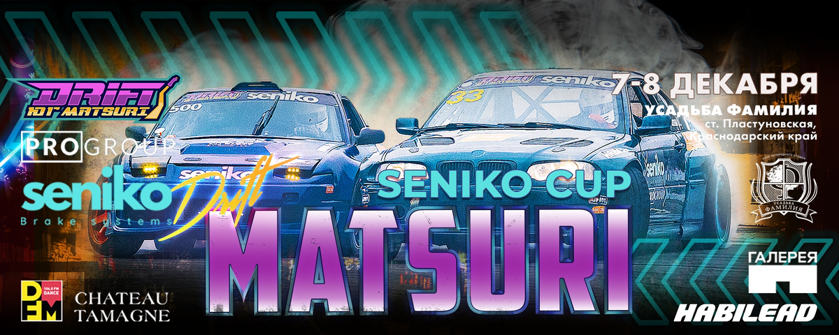 Декабрьский Кубок Seniko Дрифт-Юг Matsuri начался не по сезону жарко. Среднее арифметическое лошадиных сил на треке достигло 350 л.с Допущены к участию фестиваля 30 пилотов, среди которых представители Крыма, Краснодарского и Красноярского краев, Свердловской (Екатеринбург) и Ленинградской областей.