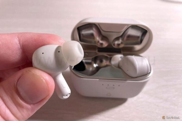 Creative предлагает три размера амбушюр с этими наушниками, но я обнаружил, что предустановленный средний размер обеспечил мне комфортную и надежную посадку. У меня не было никаких проблем с тем, чтобы наушники не болтались в ушах, что нельзя сказать о моих AirPods. Удобно, что в зарядном кейсе есть светодиоды на передней панели, показывающие, сколько заряда осталось в футляре. Также имеется кнопка ручного связывания прямо под этими светодиодами, а ниже — порт зарядки USB-C.