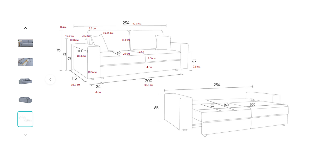 И, когда уже практически закончила свои вычисления, обнаружила второго продавца, у которого указаны размеры этого дивана. Вот они: