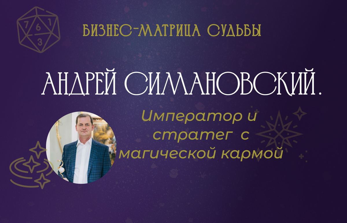 И посмотрим, как красиво подобрались самые важные энергии в Матрице предпринимателя Андрея Симановского: целеустремленный император и стратег, достигающий статуса и материальной обеспеченности, который постепенно принимает другую сторону своей Души и раскрывает свой духовный ресурс, переходит к другому циклу своей жизни.