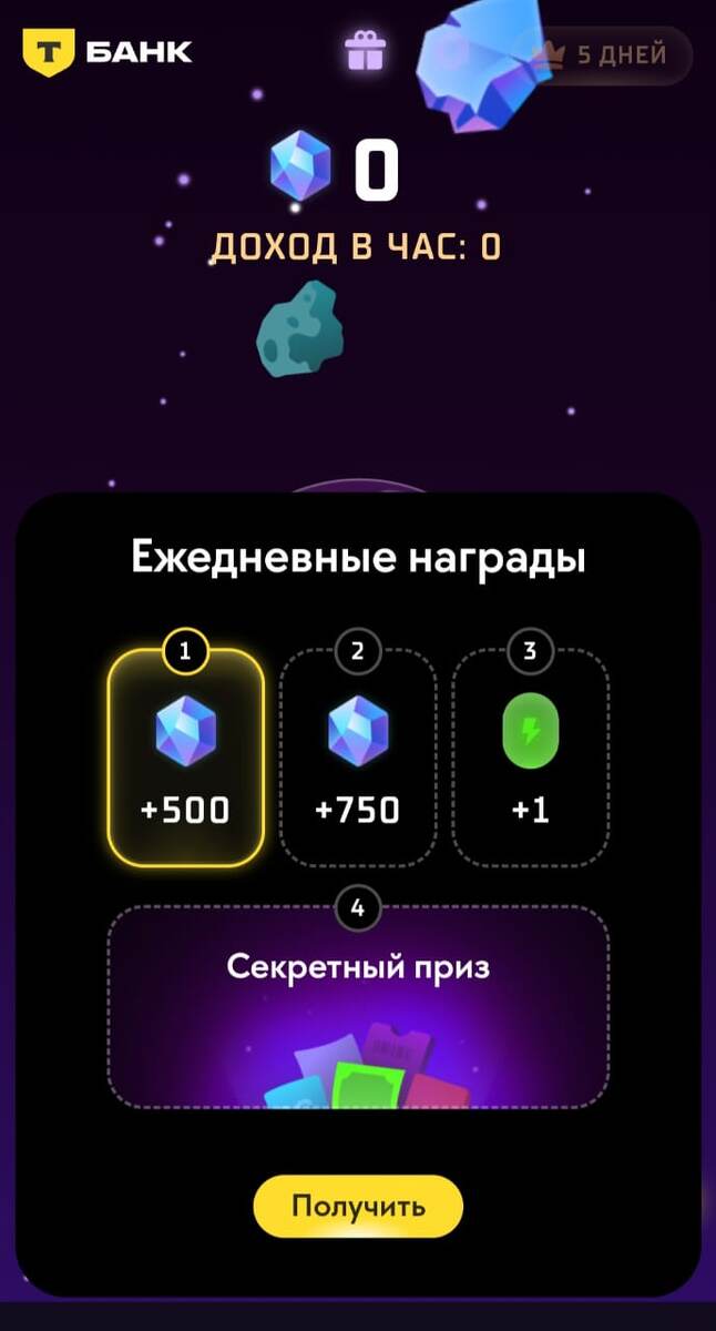 Как обещала, показываю подарки от Спейс Инвесторс "для избранных". Это началось еще с 25 ноября, соответственно, когда вышла эта игра. На аккаунте мужа каждый день дают подарок за вход в игру. Тут видно, что это самое начало. Вверху указан заработок 0 кристаллов в час. А сегодня уже суббота. Так было утром. Обратите внимание, какие подарки дают. 2,5к кристаллов это немало, а 3 батарейки - тем более. Секретный приз обычно промокоды. Сначала я не могла понять, почему на моем акке нет таких пожарков. Теперь, когда вижу, с каким отрывом первые места в Спейс Инвесторс - стало ясно. Может, разовая акция плюс те же 2,5к кристаллов это немного, но ежедневные такие добряки - другое дело. Почти 500 у первого места. Я же нахожусь на 22 месте. Интересно, что я реально часто заходила в игру и даже считала, какие приборы выгоднее купить. Т-банк ответил, что привилегия получить подарок при ежедневном входе в игру - не для всех. Это решение принимается системой. На аккаунте мужа 31 место из 35, ч