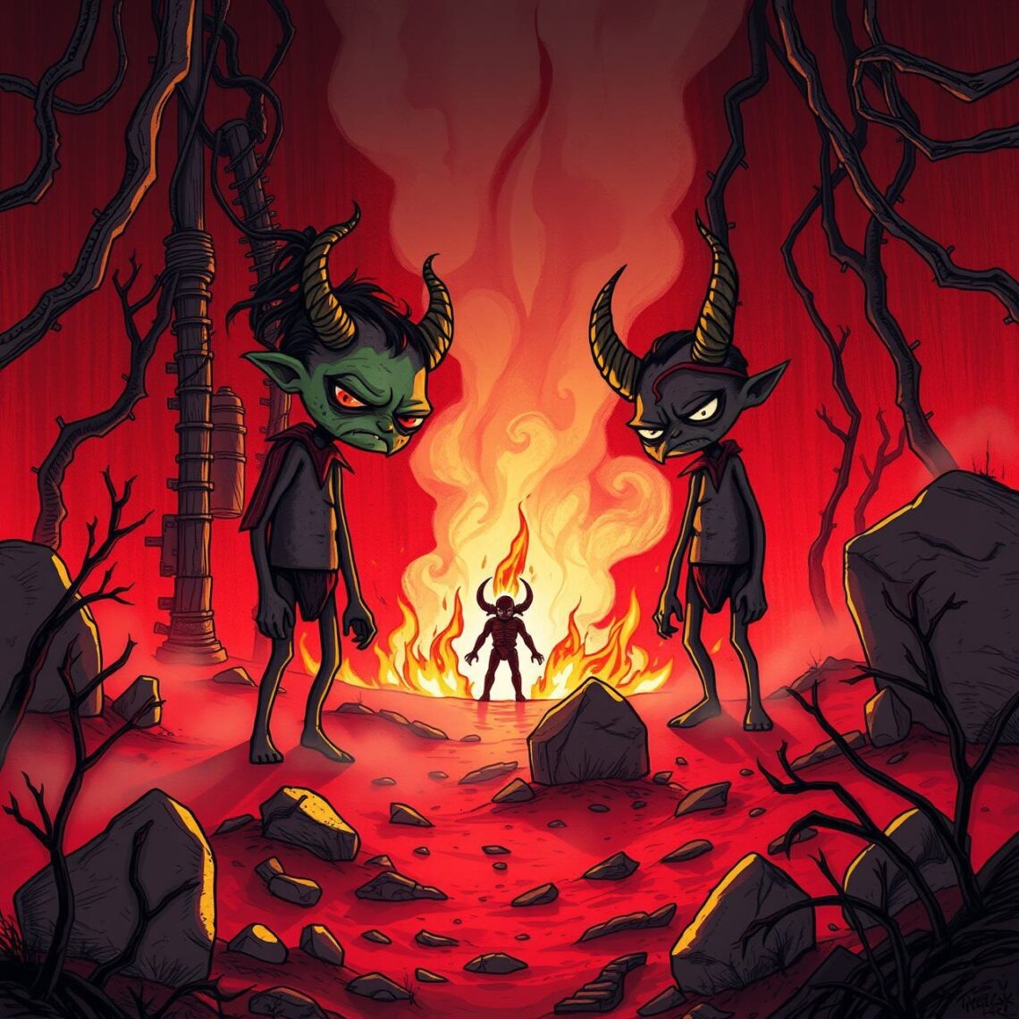 Тем временем, обстановка в Аду накалялась. Бесперебойно функционирующий конвейер по кипячению грешников в смоле, ранее работавший как часы, сейчас «не фурычил». Всё началось с банального: тот, кто обязан был подкладывать дрова под огромные котлы, отказался вкалывать. Костлявый бес мрачно таращился в небо, куксился и молчал. А потом вдруг «взорвался» самой настоящей истерикой. Он топал ногами и визжал, вспоминал все неучтённые переработки и недогулянные отпуска, кричал про неуважение к корпоративным правилам и отсутствие тимбилдинга.