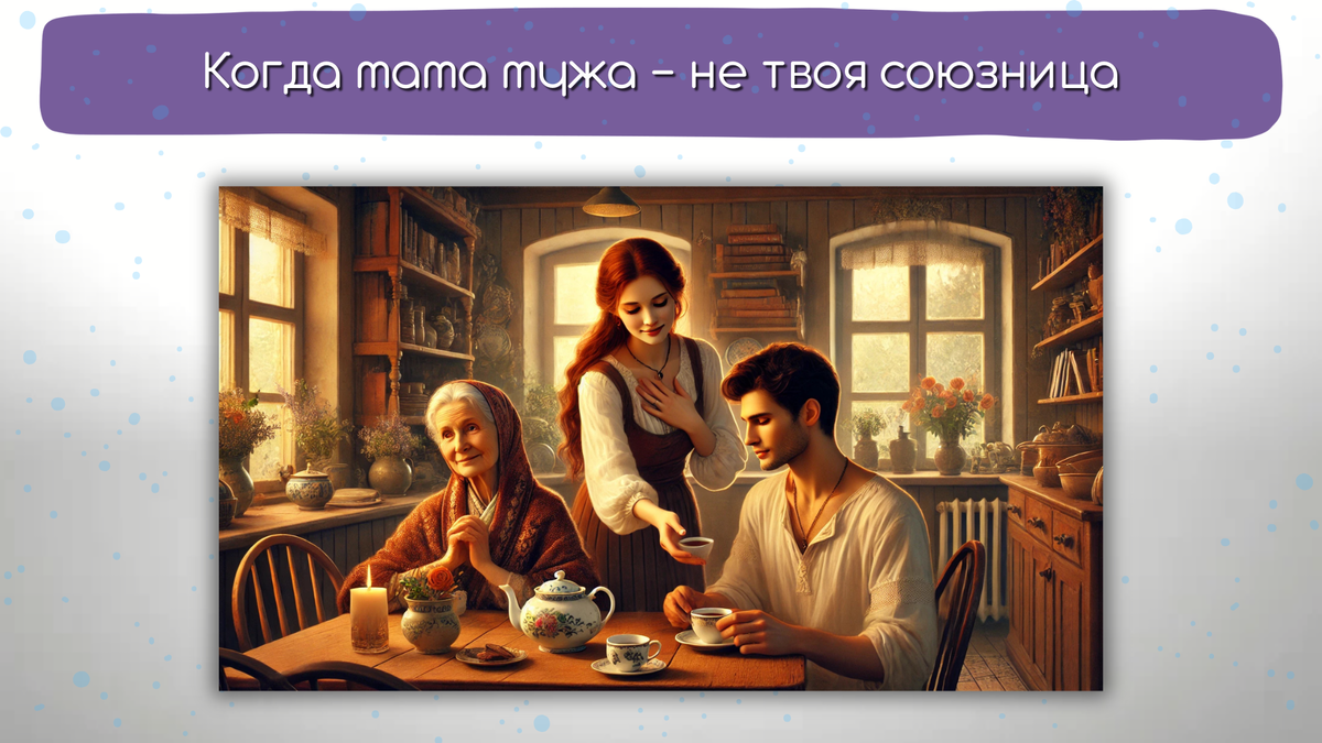 — Знаешь, Катя, когда я вышла замуж, моя свекровь меня учила всему. Как готовить, убирать, мужа радовать. Я тогда думала: "Никогда не стану такой". А теперь... повторяю те же ошибки.