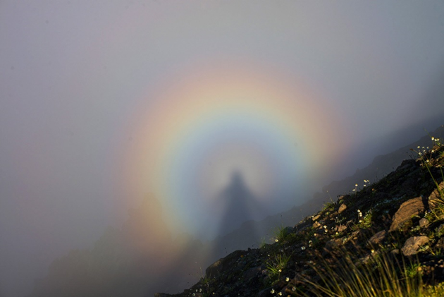 В полночь (а когда же иначе?) ребёнок внезапно осознал, его ждут еще два урока – среди них задача по географии. Ребенок задал вопрос, что такое Брокенский призрак? Вот, нашли, узнали, делюсь. Брокенский призрак (немецкое - «Брокенгеспенст») – это уникальное атмосферное оптико-иллюзорное явление, когда тень наблюдателя необычайно растягивается на облаках в противоположной Солнцу стороне. Тень может казаться исполинских размеров и окружена цветными кольцами «глориями». Необычные колебания призрака происходят из-за движения облаков и изменения плотности водяных паров, создающих эффект живой тени. Голова фигуры словно окутана сияющими ореолами света – это результат преломления солнечного света каплями воды в облаках, формирующий ложное свечение на противоположном от Солнца фоне. В туманах горных склонов тень путешественника искажается до фантастических форм из-за перспективы и оптических иллюзий: близость к облакам делает её кажущейся огромной, в то время как реальные размеры теряются. Яв