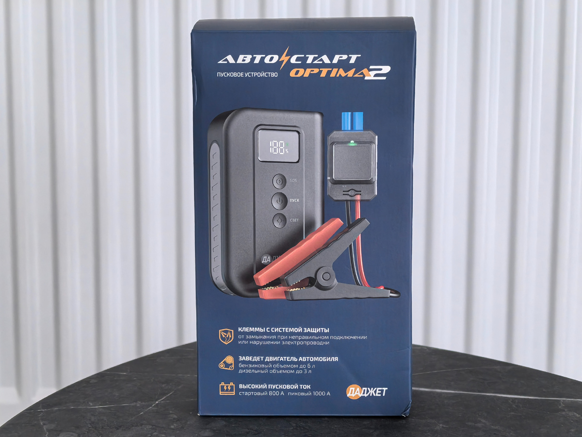 Даджет Автостарт OPTIMA 2 – типичное пусковое зарядное устройство. Гаджет не только позволяет запустить аккумулятор автомобиля, но и способен подзарядить другие мобильные устройства. К сожалению, подзарядить ноутбук от него не получится, однако он легко поддержит уровень батареи в смартфоне, планшете и других мобильных аксессуарах.