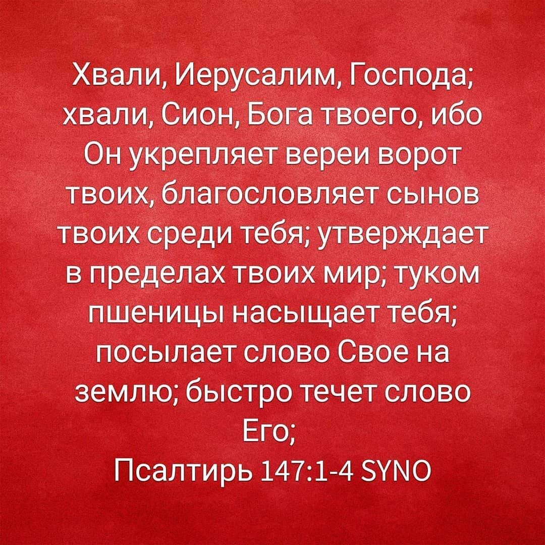 “Ибо Он укрепляет вереи ворот твоих, благословляет сынов твоих среди тебя; утверждает в пределах твоих мир; туком пшеницы насыщает тебя”