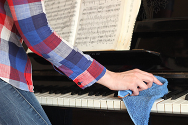 Советы по уходу за поверхностью инструмента Пианино и рояли с сатинированной поверхностью Сатиновый лаковые поверхности требуют деликатной уборки! Чем больше тереть участок поверхности, тем больше он начинает блестеть. При уходе за пианино используйте как можно меньше влажных салфеток. Капли воды могут повредить сатиновому покрытию или оставить пятна. Пианино и рояли с полированной поверхностью Полированные полиэстеровые поверхности инструментов стабильны, однако пыль и другие мелкие частицы могут оставлять на полированной поверхности мелкие царапины. Осторожно смахните пыль, например, чистой сухой салфеткой из микроволокна. Далее удалите отпечатки пальцев при помощи мягкой, слегка увлажнённой матерчатой салфеткой. Чистка клавиш Поверхность клавиш инструментов сделана из пластика. Их рекомендуется чистить мягкой тряпочкой. Не используйте абразивных чистящих средств! Чистку поверхности клавиш из натуральных материалов лучше поручить профессиональному фортепианному мастеру. Чистка мета