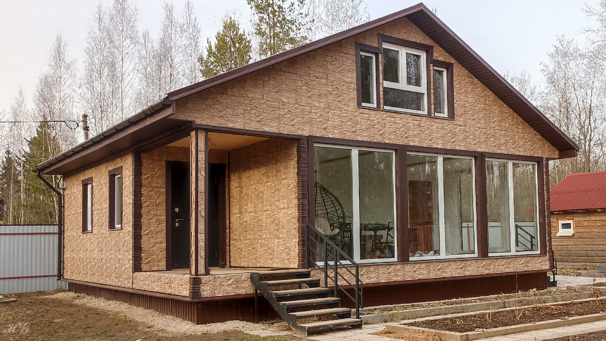 Заключительный отчет по возведению нашего дома. В прошлом году практически закончили строительство, осталось совсем чуть-чуть. Первое и самое глобальное - ранней весной заказали сайдинг и наняли рабочих. Новый фасад полностью преобразил дом, первое время было очень непривычно. Установили новые лестницы, их покупали еще зимой. С этого года мы живем в нашем доме! Не нужно гонять каждый день на велике туда и обратно. К маме мы конечно же ездили и очень часто, но это уже не то. Летом снова приезжал наш мастер на все руки, доделал отделку на веранде и закончил с мелочевкой в доме: плинтуса, пластиковые уголки, наличники. После этого он занялся внутренней отделкой бани. Одно помещение было готово в прошлом году, в этот раз переложили полы, обшили стены вагонкой, поставили печь. Осталось мебель поставить и внутри будет готово. С наружней отделкой пока не определились, надо оно нам или нет. Мне вроде и так нравится, бревенчатая, но птички хулиганят и вытаскивают мох между бревнами. На крыльц