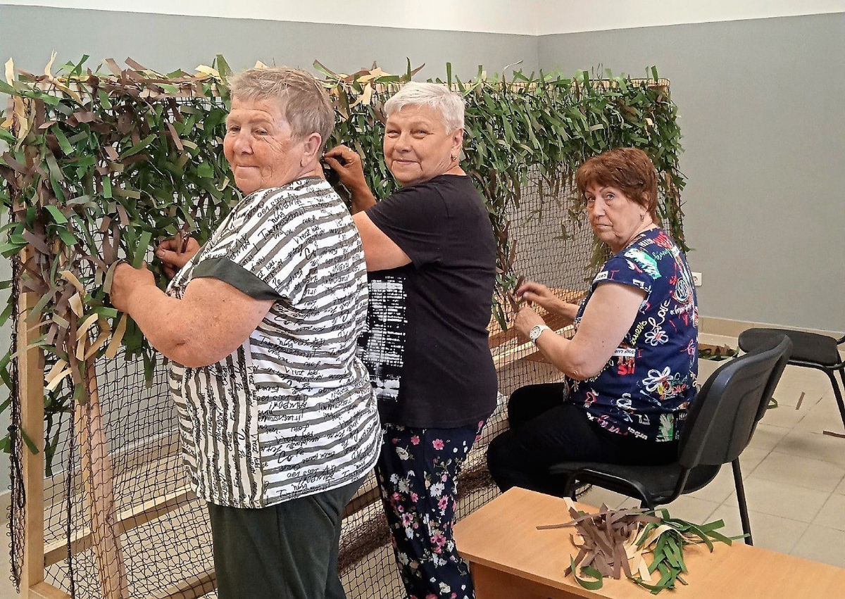 Ветераны и пенсионеры Архангельска плетут маскировочные сети для участников СВО